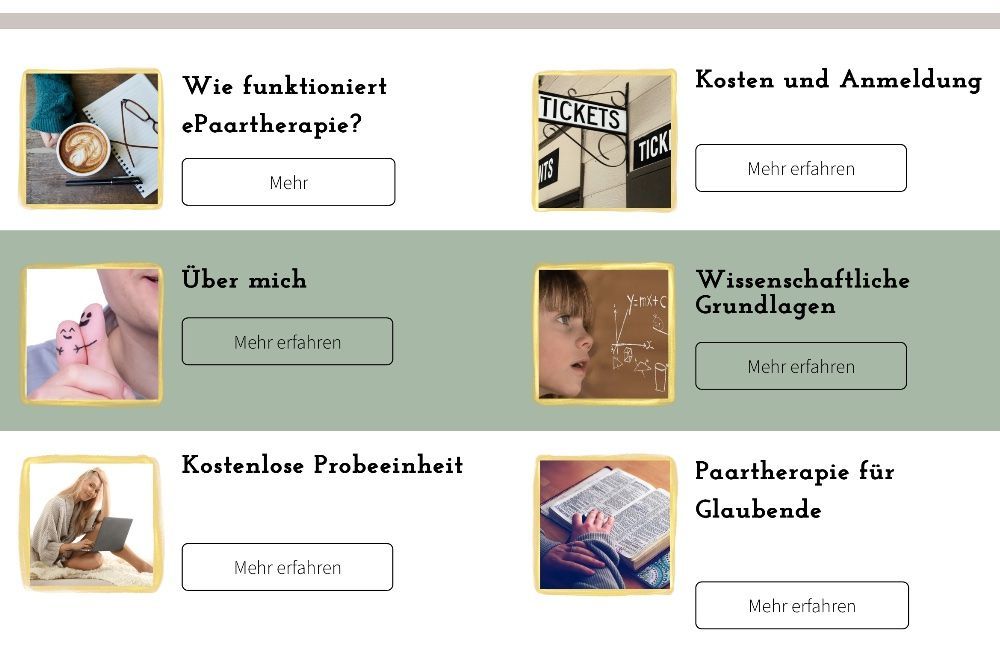 - Durchlaufen Sie die Einheiten meiner Online-Paartherapie, die ich Ihnen unten vorstelle. Vielleicht ist Ihre Situation noch zu angespannt, um die Einheiten gemeinsam zu machen. Dann finden Sie unter jeder Einheit auch eine Anleitung, wie das jeder für sich tun kann. Das wird Ihnen erste Aha-Erlebnisse bringen und Entwicklungen anstoßen, auf denen wir aufbauen können.